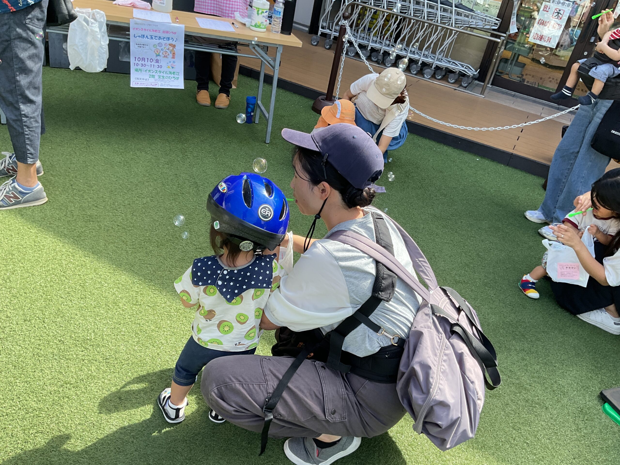 10月10日(金)に「【出張ひろば】しゃぼん玉をつくろう!」をイオンスタイル海老江 2階芝生ひろばにて開催しました!