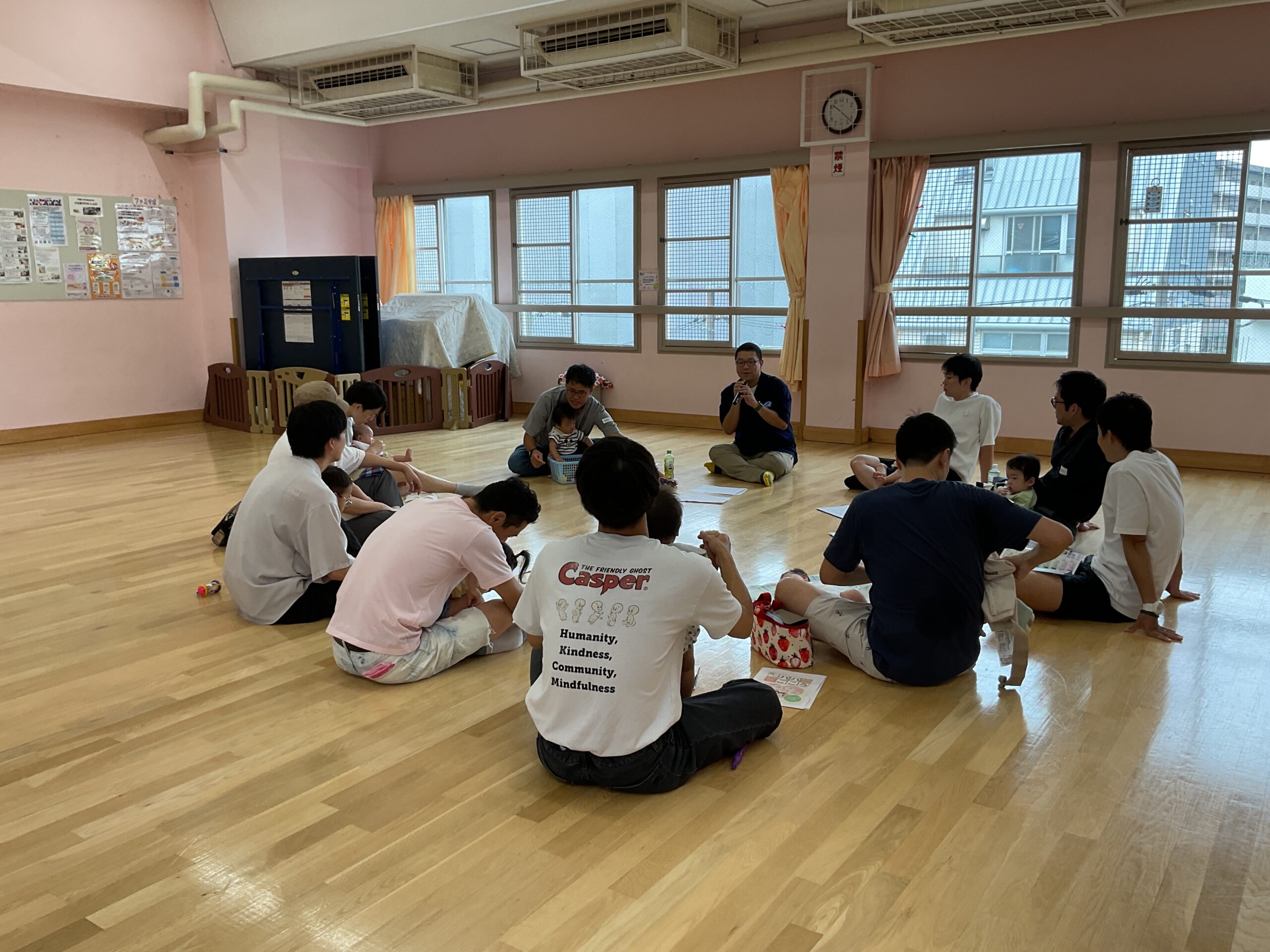 当日はパパ10名・乳幼児12名・ママ7名の参加があり、ボランティアさん3名にも参加いただきました。