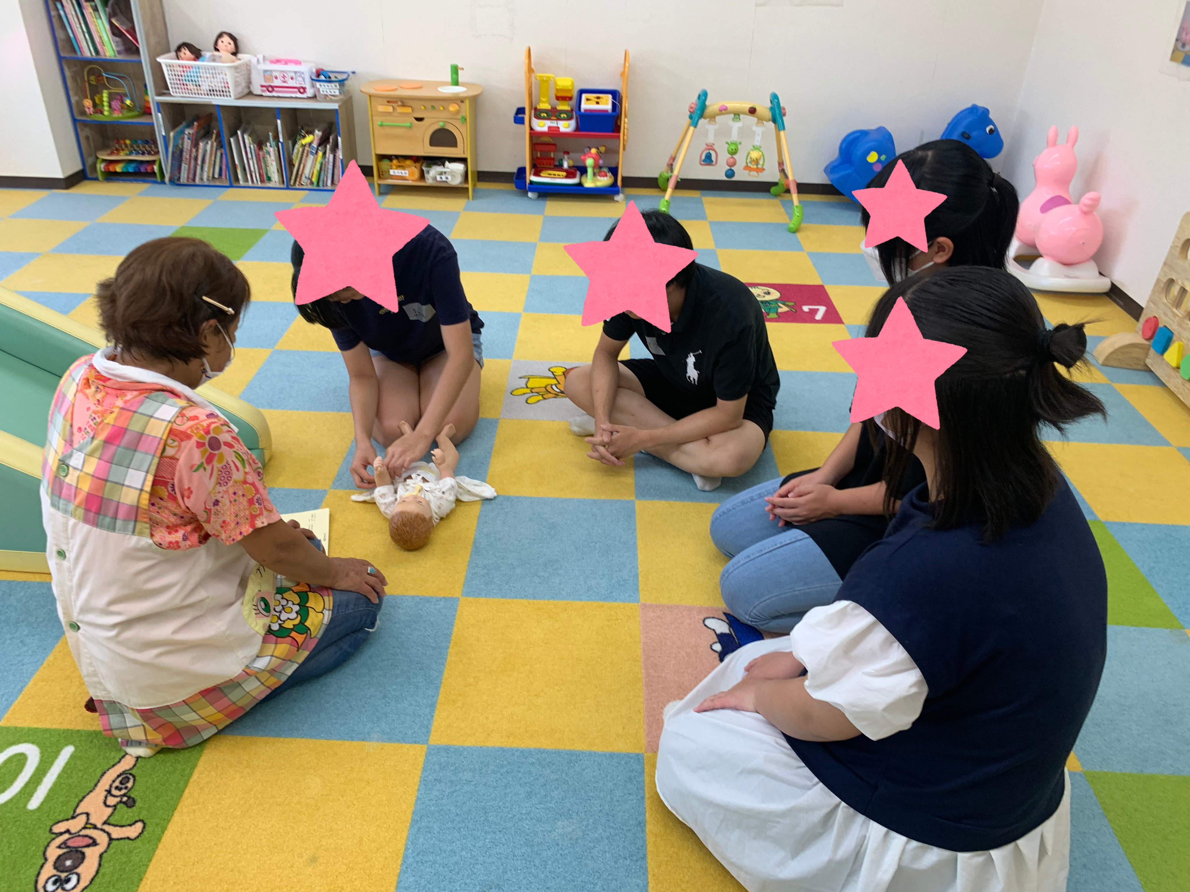 8月6日(水)・12日(火)の2日間にわたってつどいの広場にボランティア体験として『追手門学院大手前高校』さんから7名お越しいただきました。